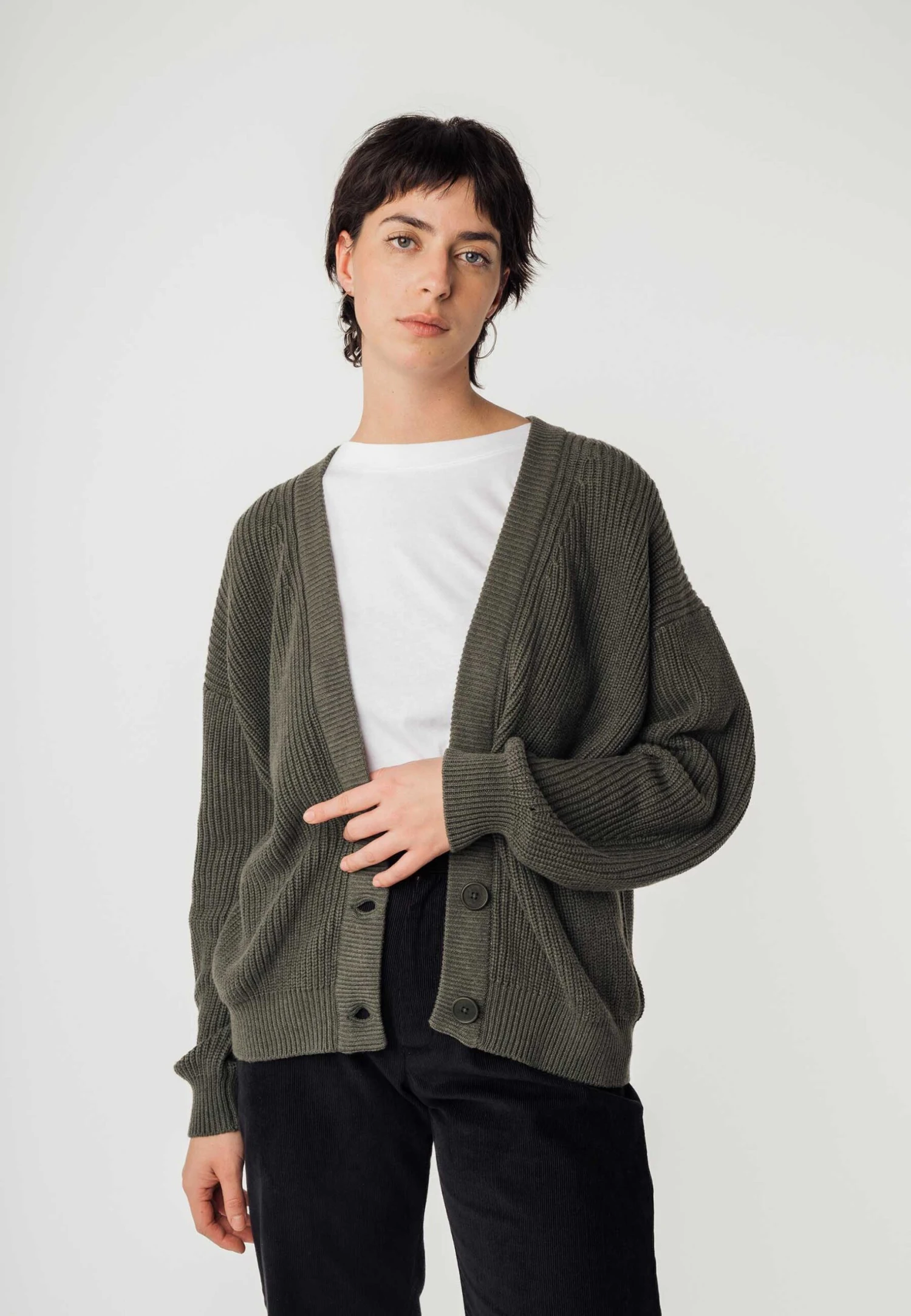 Hergestellt aus 100% Fairtrade-Baumwolle aus biologischem Anbau zeichnet sich diese atmungsaktive Strickjacke durch ein besonders angenehmes Tragegefühl aus und ist vollständig vegan.