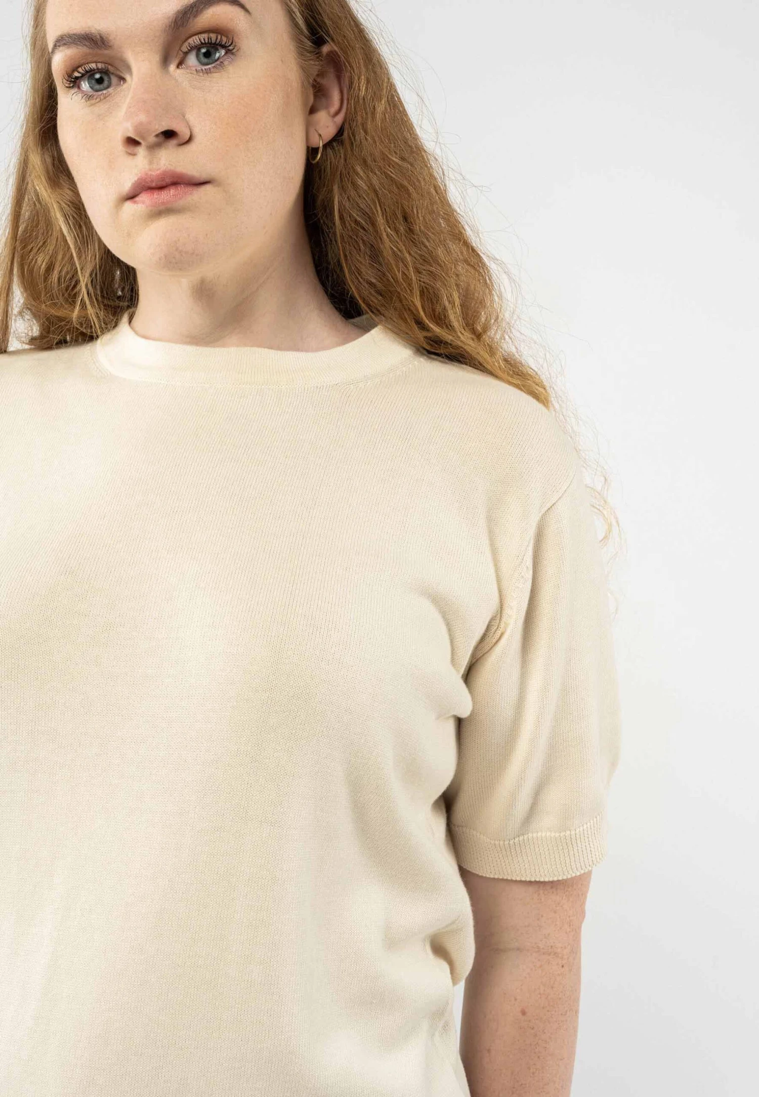 Das T-Shirt aus Feinstrick ist zeitlos und elegant. Es besitzt halblange Ärmel, einen gerippten Rundhalsauschnitt und Rippbündchen. Der klassiche Style ist ein hochwertiges Essential sowohl fürs Büro als auch in der Freizeit.