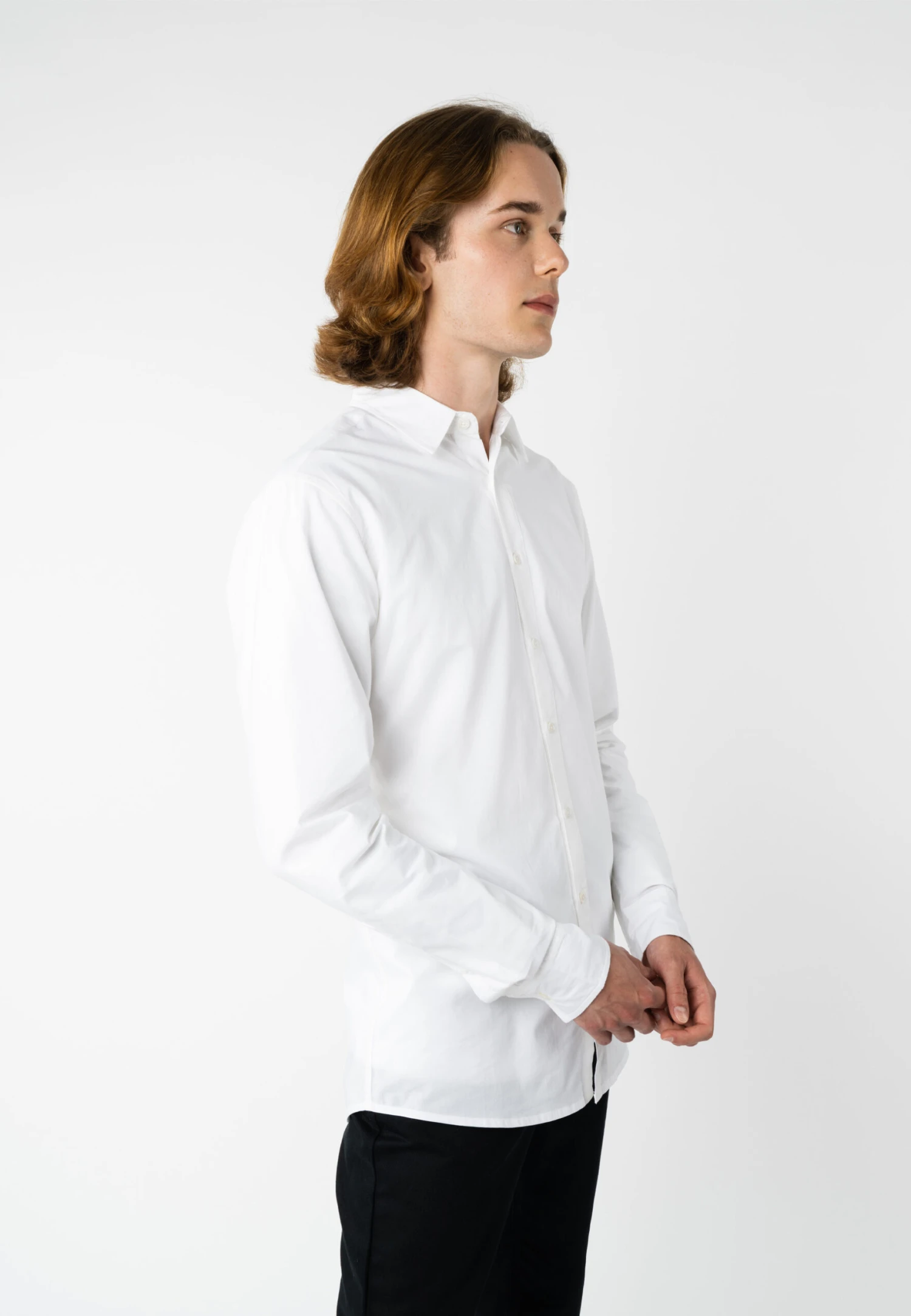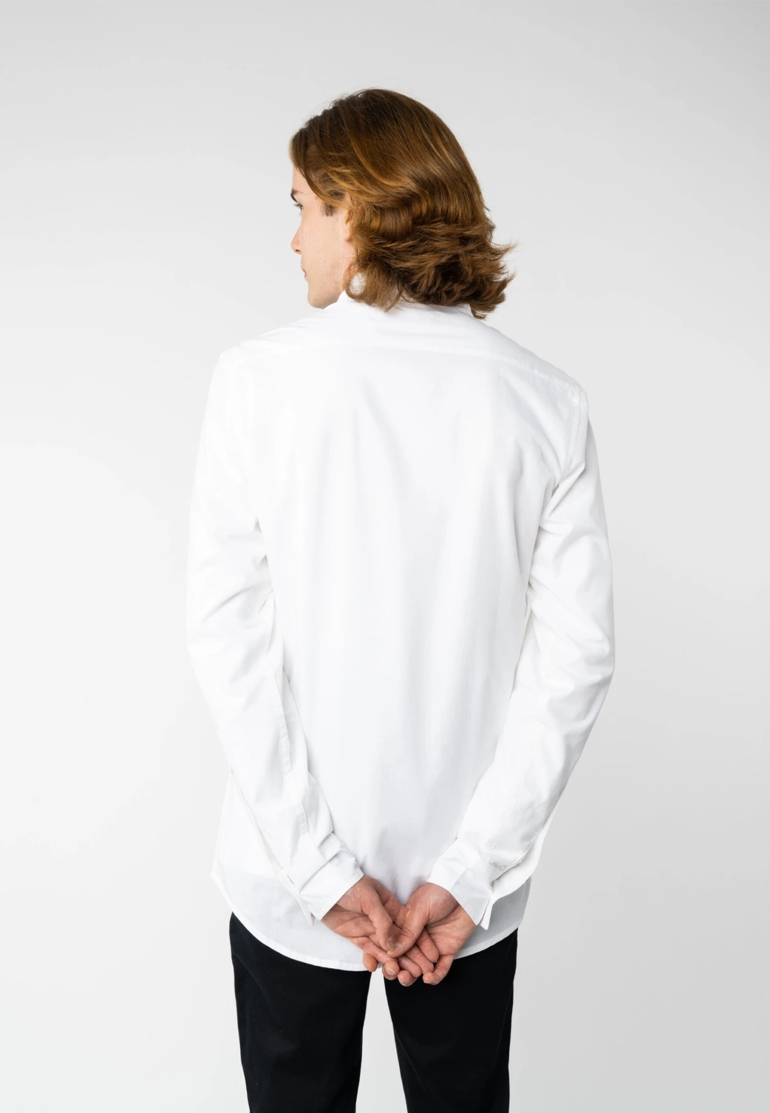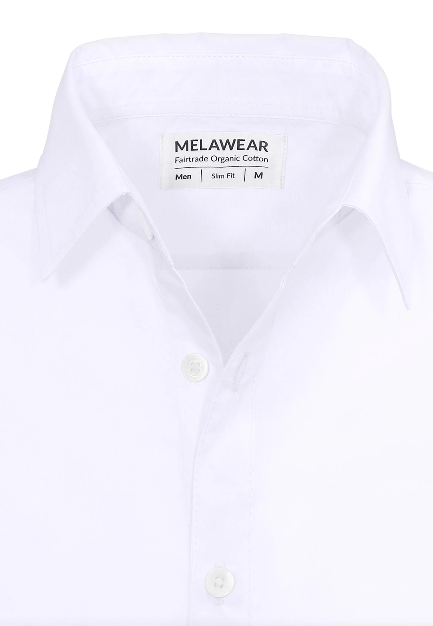 Unser MELA Basic Hemd ist ein Klassiker, der in keinem Kleiderschrank fehlen darf. Das Slim-fit Hemd mit Kentkragen zeichnet sich durch seinen hochwertigen, strapazierfähigen und dennoch besonders weichen Popelinstoff aus. Die Knöpfe aus Flussperlmuschel sind naturbelassen und somit besonders ökologisch.