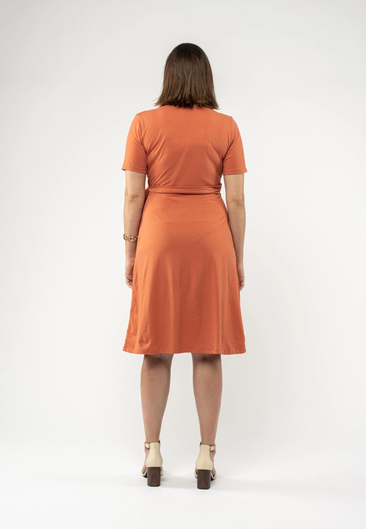Hergestellt aus 100% Fairtrade-Baumwolle aus biologischem Anbau zeichnet sich dieses atmungsaktive Wickelkleid durch ein besonders angenehmes Tragegefühl aus und ist vollständig vegan.