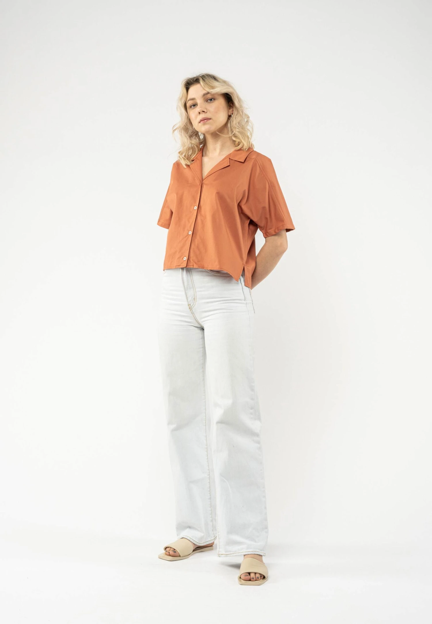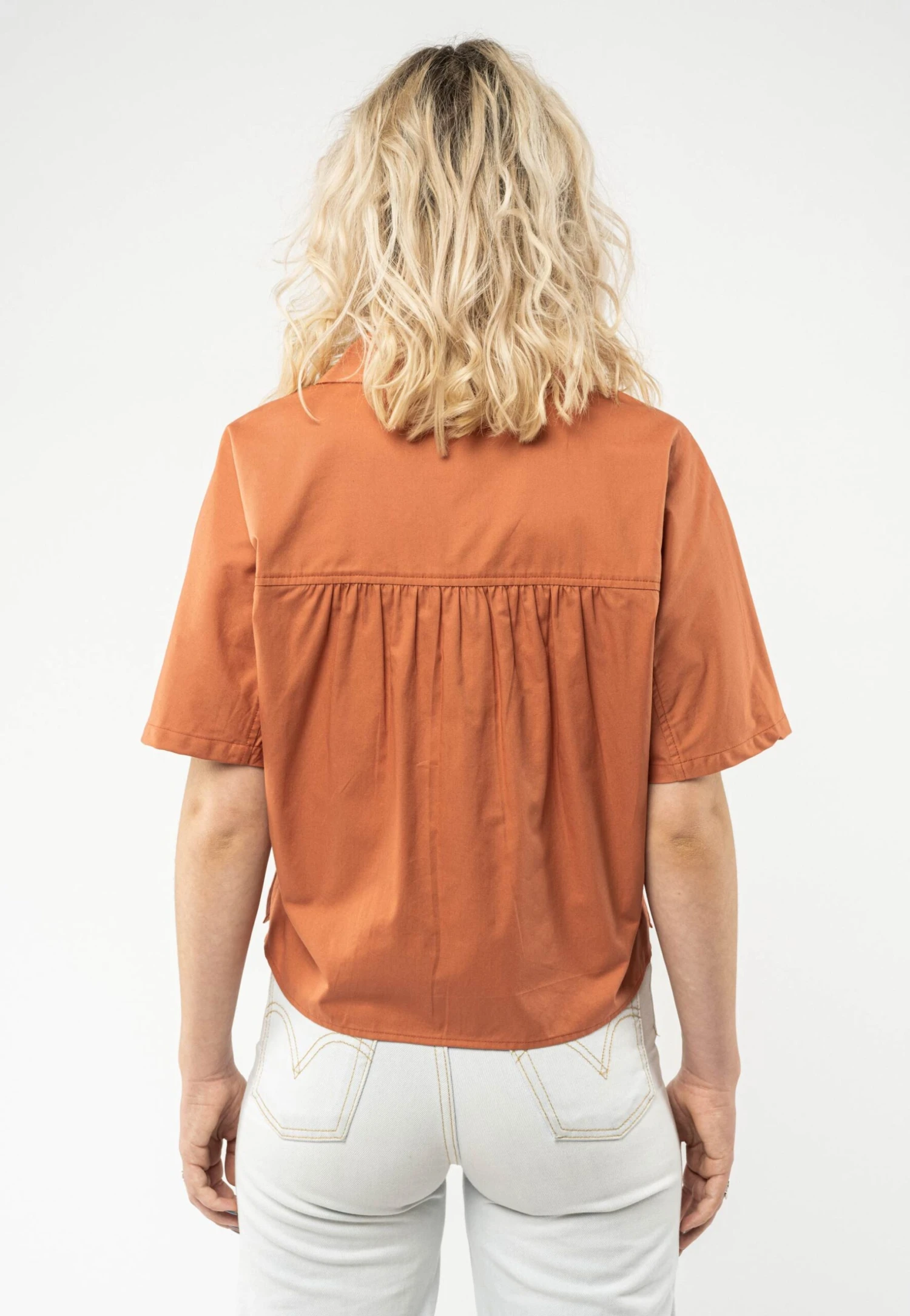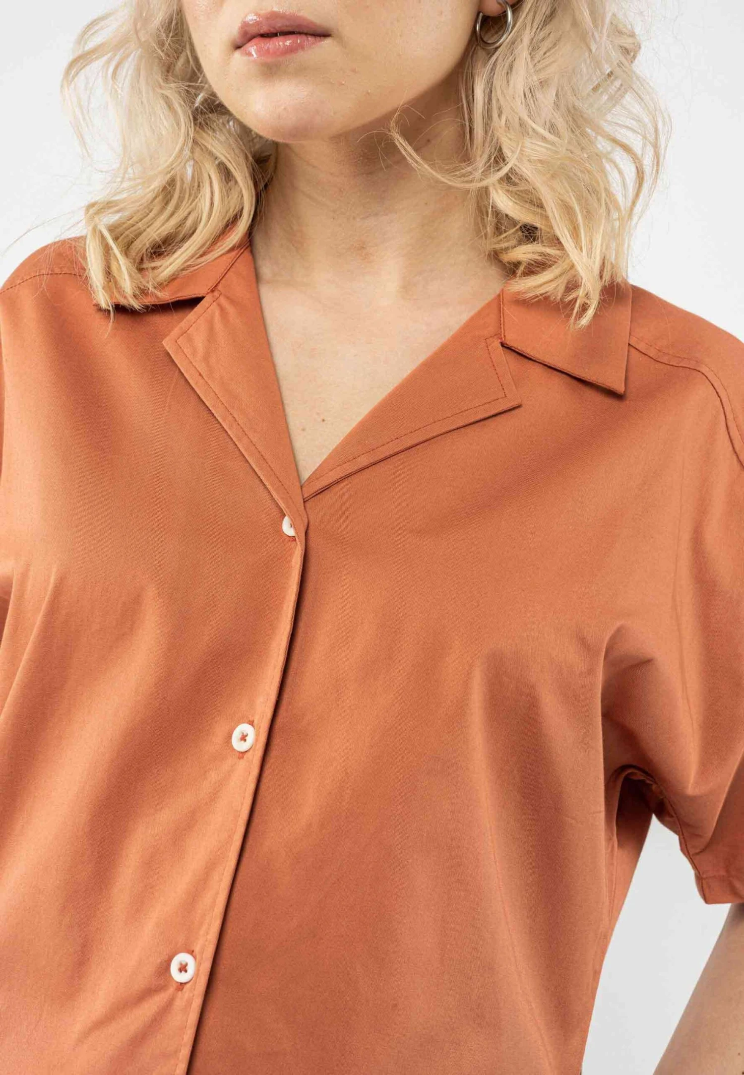 Die Bluse mit Bowling-Kragen hat einen sommerlich, lässigen Look. Gefertigt aus Baumwoll Webstoff, ist sie luftig und atmungsaktiv. Der Style der Bluse mit den lässigen halblangen Ärmeln wird abgerundet durch eine hochwertige Knopfleiste mit Corozo-Knöpfen.