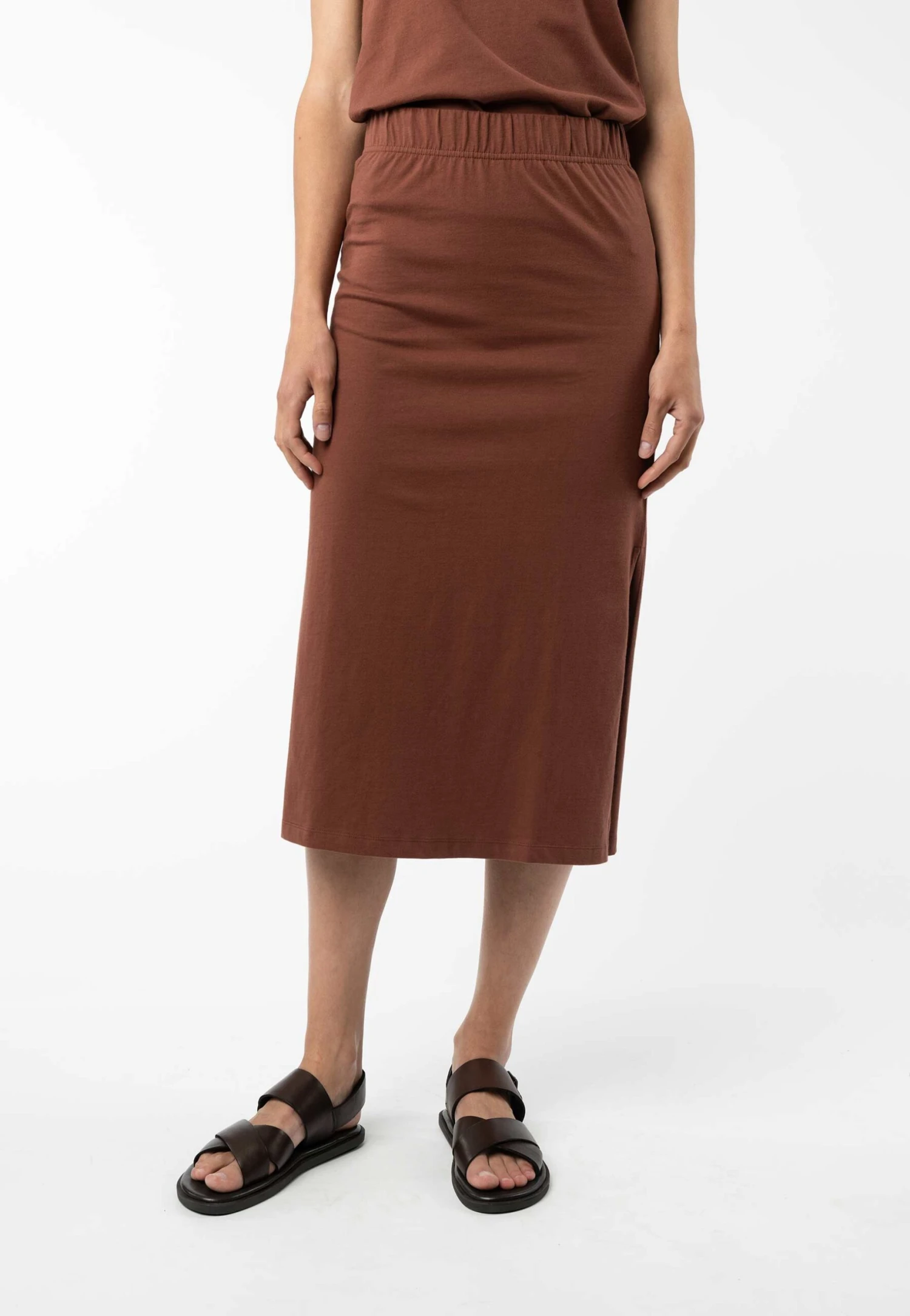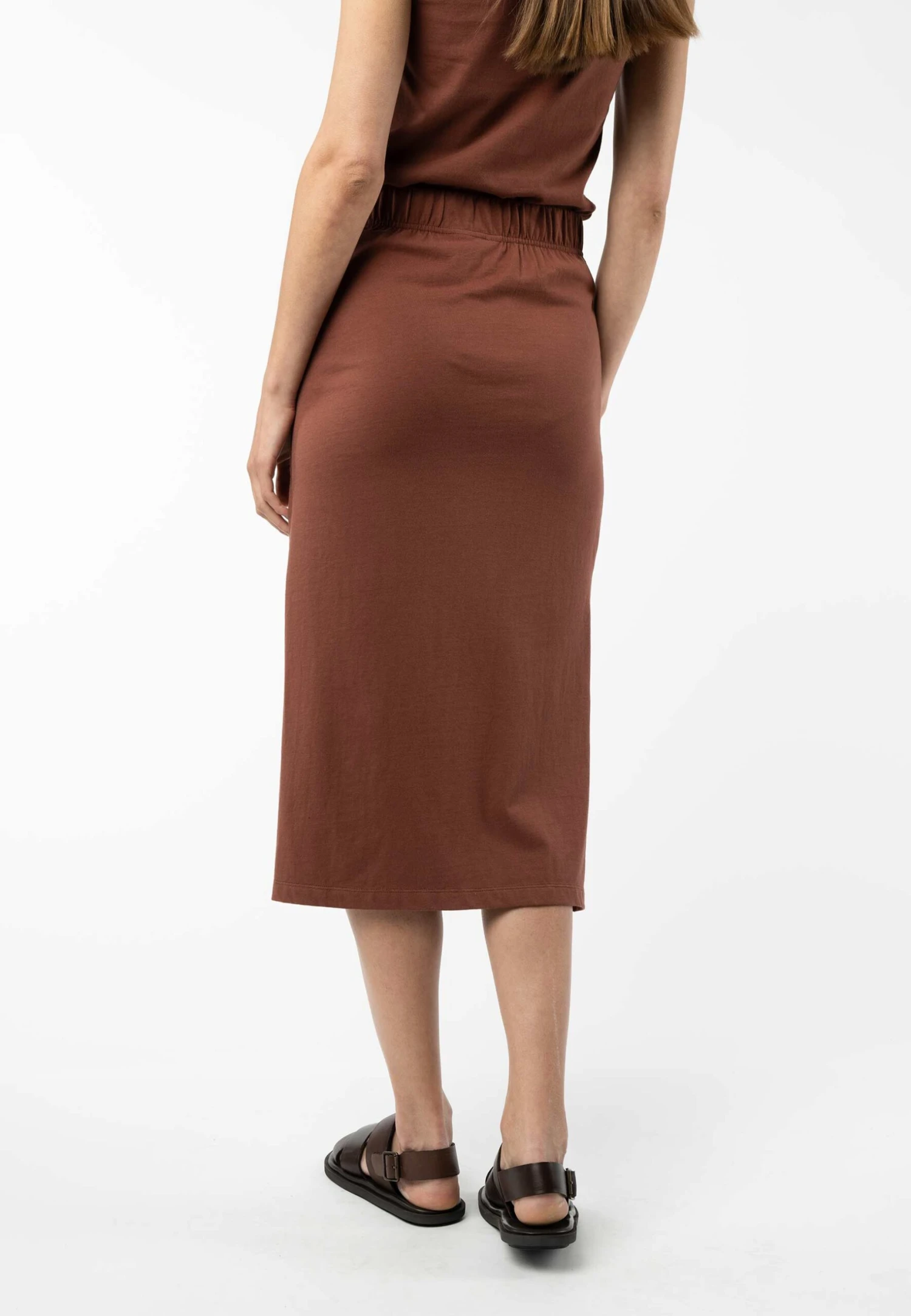 Der weich fallende Midi Rock bringt Schwung in den Look. Mit bequemen elastischen Bund in Mid Waist optik und Seitenschlitzen