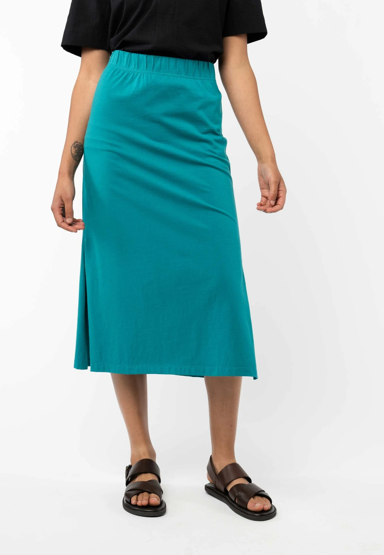 Der weich fallende Midi Rock bringt Schwung in den Look. Mit bequemen elastischen Bund in Mid Waist optik und Seitenschlitzen