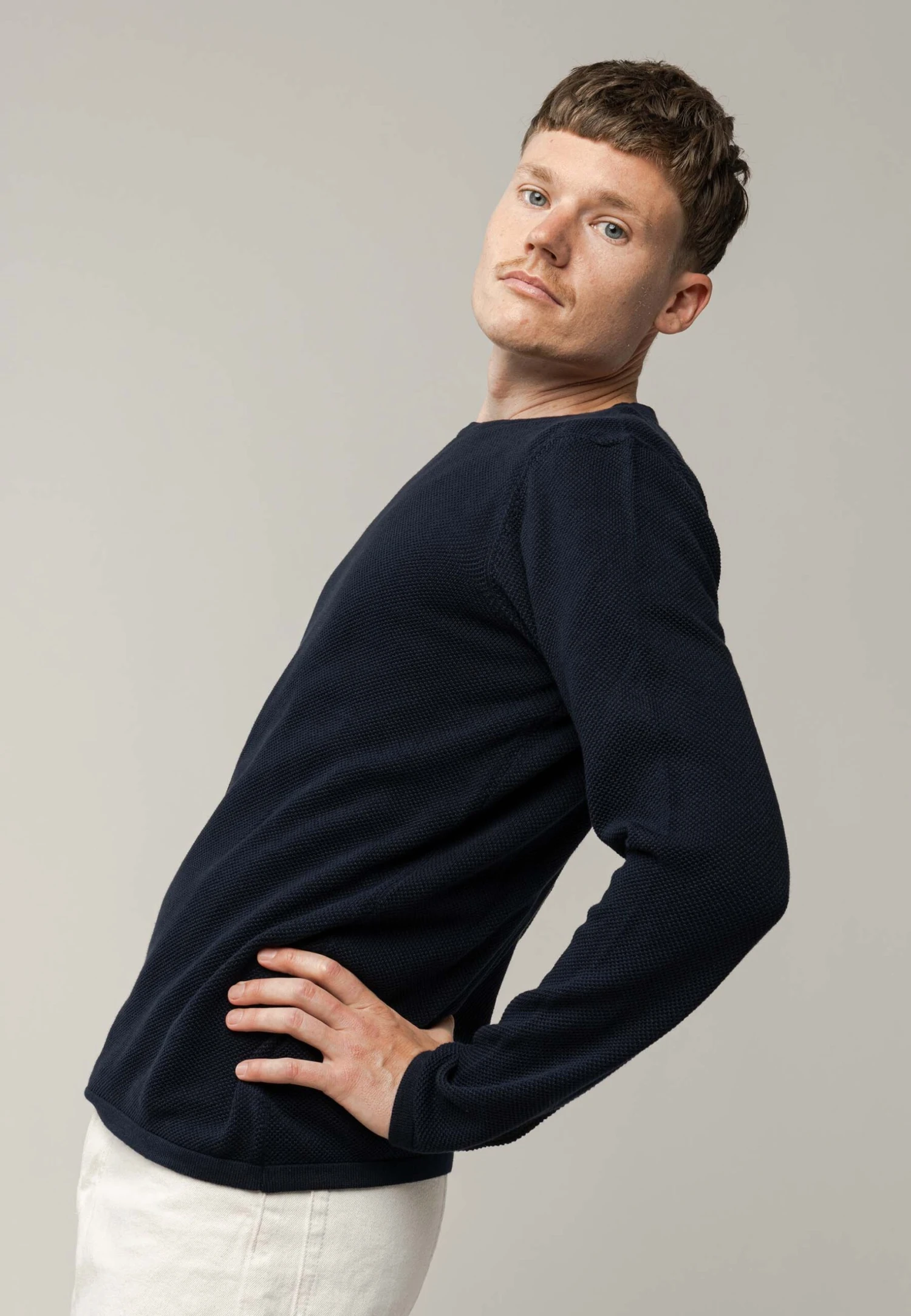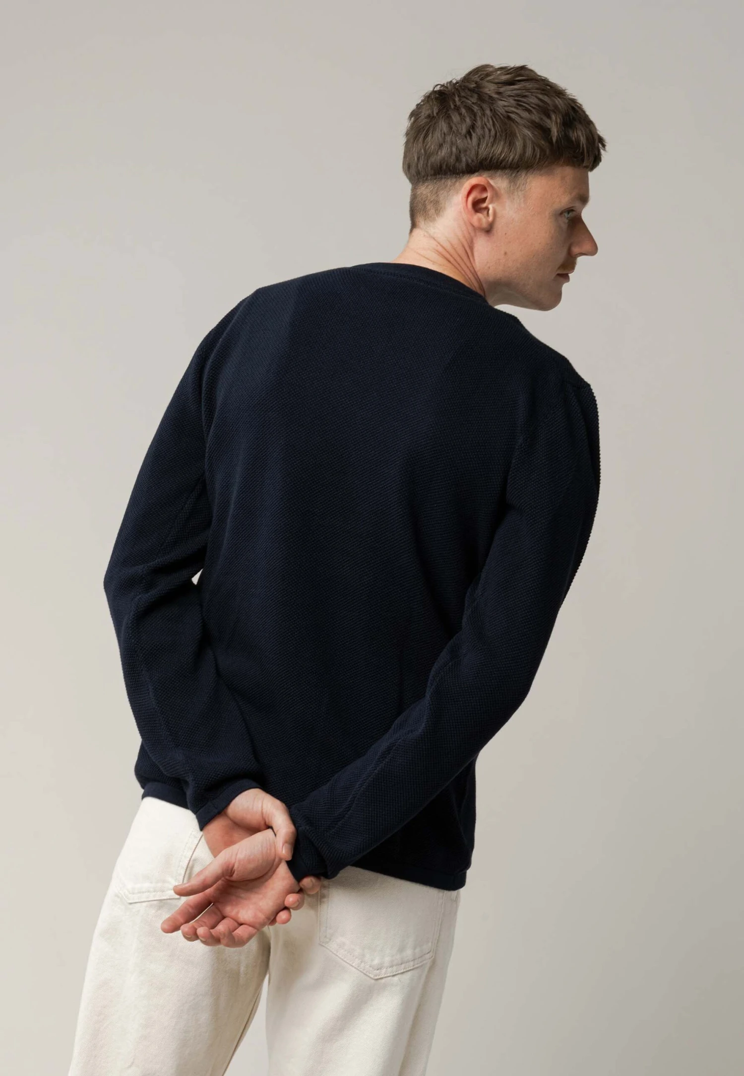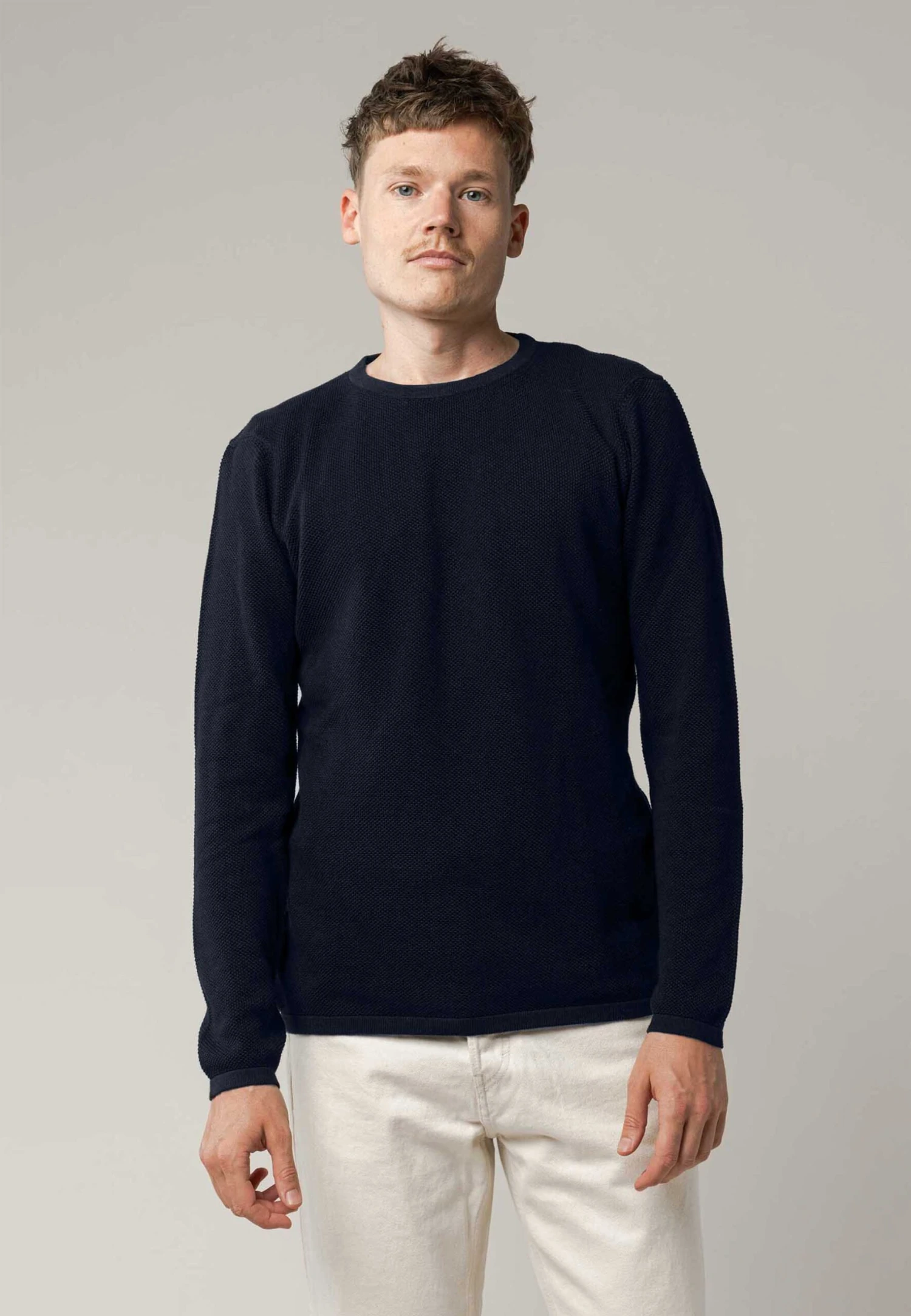 Yuva ist ein klassischer Pullover in leichtem Strukturstrick für den täglichen Look. Der Rundhalsausschnitt und die gerippten Bündchen machen Yuva besonders bequem.