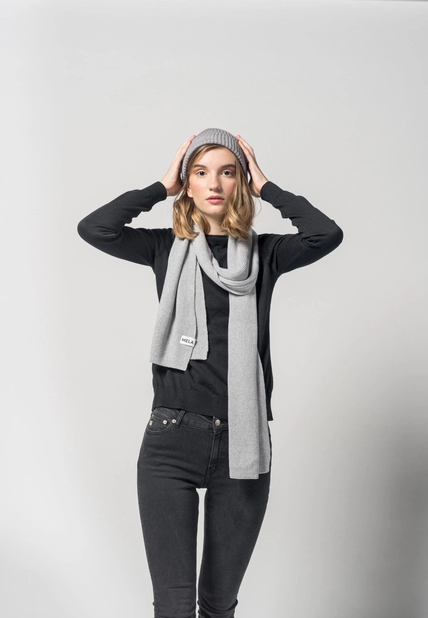 Unser Strickschal aus nachhaltiger Bio-Baumwolle bringt dich warm durch die kalte Jahreszeit. In den Farben grau-melange und schwarz rundet der Schal jedes Outfit ab. Passend dazu gibt es MELA Mützen und Stirnbänder. Dank einer Vorwäsche bleibt der Schal besonders formstabil, weich und langlebig.