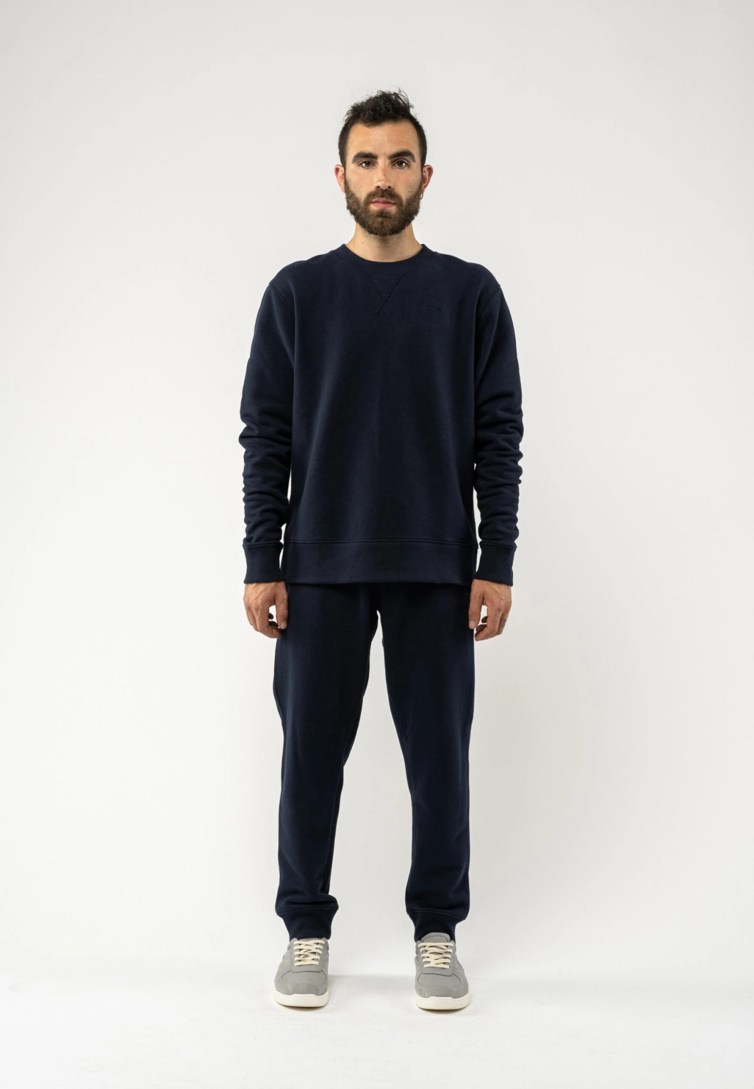 Adil ist ein sportliches Sweatshirt und ein echter Klassiker. Der Rundhalsausschnitt und die Rippbündchen machen den Sweater zu einem bequemen, lässigen Begleiter im Alltag. Als hochwertiges Detail ist eine V-Applikation am Ausschnitt zu finden.